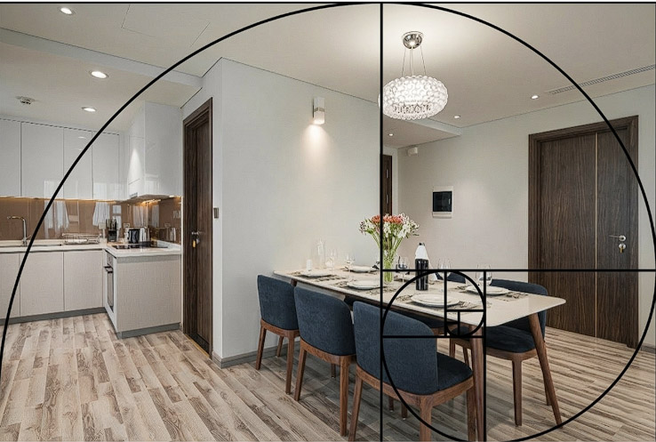 Đầu tiên là khái niệm về tỉ lệ vàng (ký hiệu là φ≈1,618) trong kiến trúc. Đấy là tỉ lệ dùng để xác định kích thước, khoảng cách tại không gian ngôi nhà như cửa sổ, cửa đi, cửa chính, trong bức tranh lớn là mảng tường để tạo ra sự cân đối, hài hòa tại ngôi nhà. Trong thiết kế hiện đại, một ngôi nhà Vật lý vô tri nếu biết cách sử dụng Tỉ lệ Vàng hay các tỉ lệ Nhân trắc học (Ergonomics) sẽ mang lại cảm giác tự nhiên, thư thái cho gia chủ. Một trong những công trình kiến trúc nổi tiếng về tỷ lệ vàng chính là Đền Parthenon, kiệt tác kiến trúc Hy Lạp cổ đại, nằm trên đồi Acropolis ở Athens. Công trình được xây dựng vào thế kỷ 5 TCN không chỉ thể hiện đỉnh cao của kiến trúc Doric mà còn ấn tượng bởi tỷ lệ vàng áp dụng trong kiến trúc. Chiều rộng và chiều cao, kích thước các hàng hiên, và vị trí cột đều xấp xỉ φ≈1,618. Nghiên cứu cho thấy bố cục “Tỉ lệ vàng” giúp những người sống trong đó ghi nhớ không gian một cách mượt mà, không gây cảm giác mệt mỏi hay “đau đầu” khi quan sát, nên sẽ giúp cho những người sống trong ngôi nhà đó giảm bớt căng thẳng, mỏi mệt giữa cuộc sống xô bồ.
