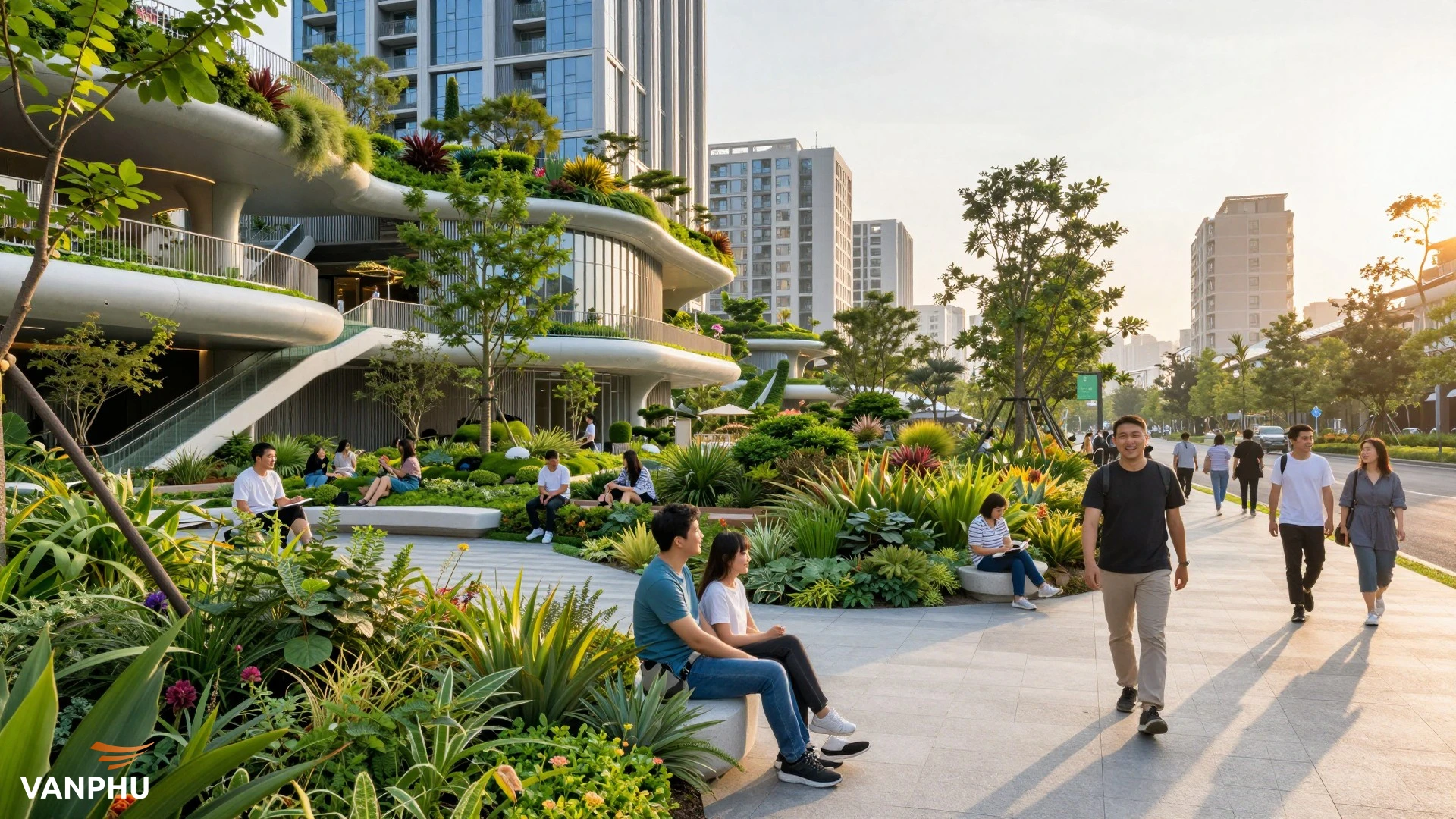 - Hệ sinh thái tiện ích: Là tổng hợp các dịch vụ và cơ sở vật chất được quy hoạch đồng bộ trong một khu đô thị, nhằm đáp ứng toàn diện các nhu cầu sống, làm việc, học tập, giải trí và nghỉ dưỡng của cư dân.