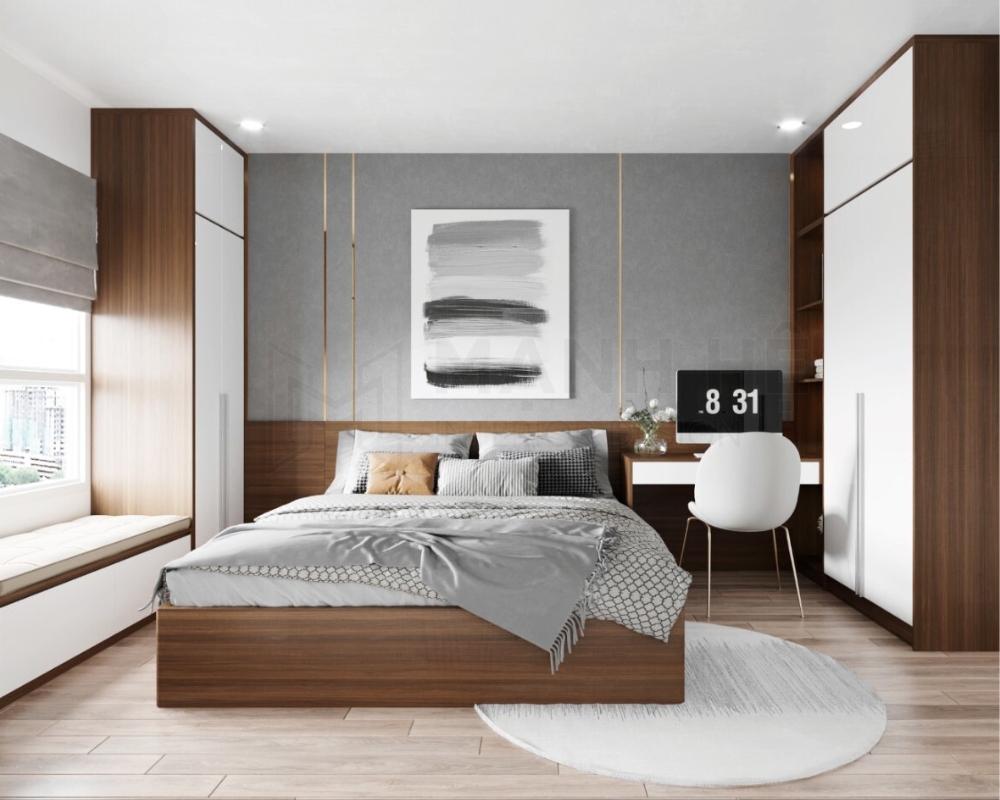 - Phòng ngủ không vuông vức: Nhiều căn hộ có phòng ngủ vát góc, khiến gia chủ khó bố trí đồ dùng một cách cân bằng. Điều này có thể gây cảm giác không thoải mái và ảnh hưởng đến sức khỏe. Để khắc phục, gia chủ nên sử dụng đồ nội thất vừa vặn với vị trí bị lệch hoặc kê chậu cây để tạo sự cân bằng không gian.