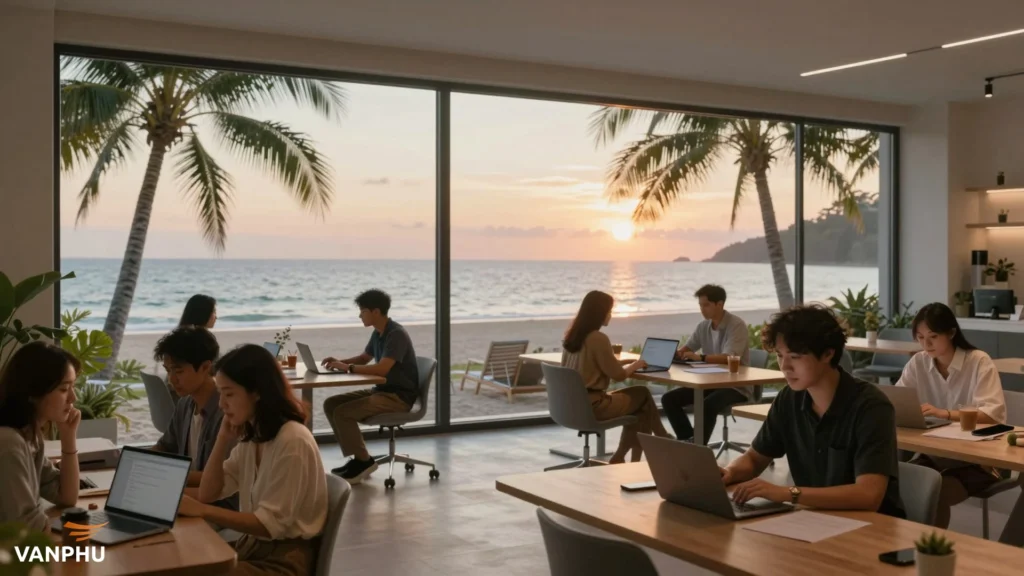 Trong kỷ nguyên số hóa hiện nay, khái niệm văn phòng không còn bị bó hẹp trong bốn bức tường bê tông ngột ngạt tại các đô thị sầm uất. Một làn sóng mới đang trỗi dậy mạnh mẽ, nơi những người làm việc tự do và nhân viên văn phòng chọn cách rời xa khói bụi để tìm đến những bờ biển xanh ngắt[1]. Xu hướng làm việc từ xa bên bờ biển không chỉ là một sự thay đổi về địa điểm, mà còn là một cuộc cách mạng về phong cách sống. Tại đây, sự nghiệp và sự tận hưởng hòa quyện làm một.