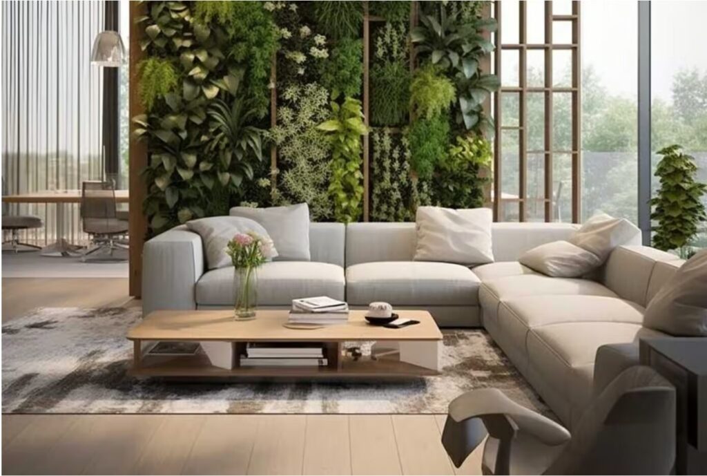Cùng với đó là màu xanh của cây cối – từ những chậu cây nhỏ xinh trong phòng, khu vườn trên ban công đến các khu vườn thẳng đứng phủ kín các mảng tường. Những mảng xanh này không chỉ làm dịu mắt mà còn tạo nên một không gian sống động, gần gũi với thiên nhiên.