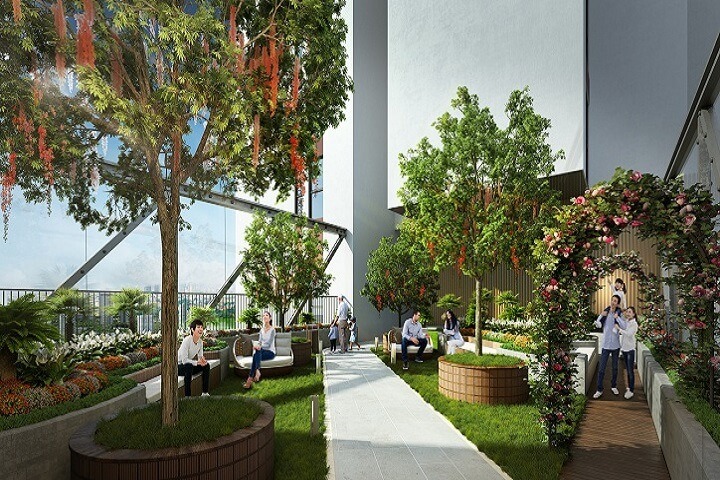 Cũng được xây dựng bởi chủ đầu tư Văn Phú Invest, dự án The Terra – An Hưng được thiết kế với hệ thống vườn đứng và lối đi bộ rợp bóng cây, giúp cư dân tận hưởng thiên nhiên trong từng bước chân. Hơn nữa, không gian xanh công cộng tại The Terra – An Hưng không chỉ là nơi để thư giãn mà còn trở thành cầu nối gắn kết cộng đồng, một giá trị mà triết lý Biophilic Design luôn hướng tới.