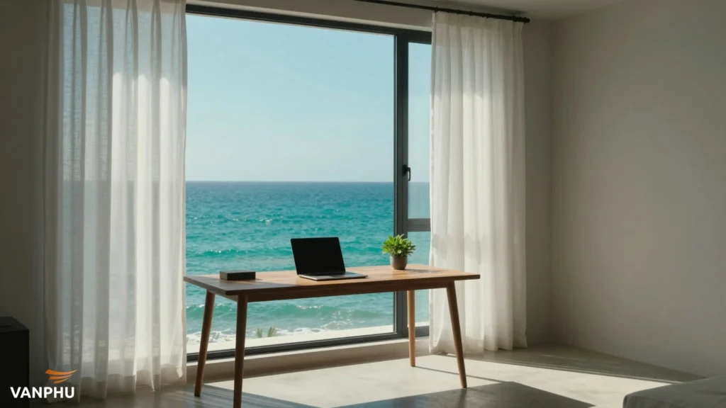 Để duy trì tư duy tối giản, không gian sống đóng vai trò cực kỳ quan trọng. Một căn hộ ven biển nên được thiết kế để đón nhận tối đa ánh sáng tự nhiên. Màu sắc chủ đạo thường là những tông trung tính như trắng, be hoặc xanh nhạt.
