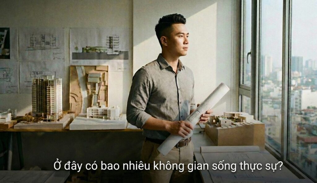 Ở vai trò kiến trúc sư, tôi đã thay đổi hoàn toàn thước đo giá trị bất động sản của mình. Tôi không còn hỏi: “Căn này bao nhiêu mét vuông?” mà thay vào đó là: “Ở đây có bao nhiêu không gian sống thực sự?”.